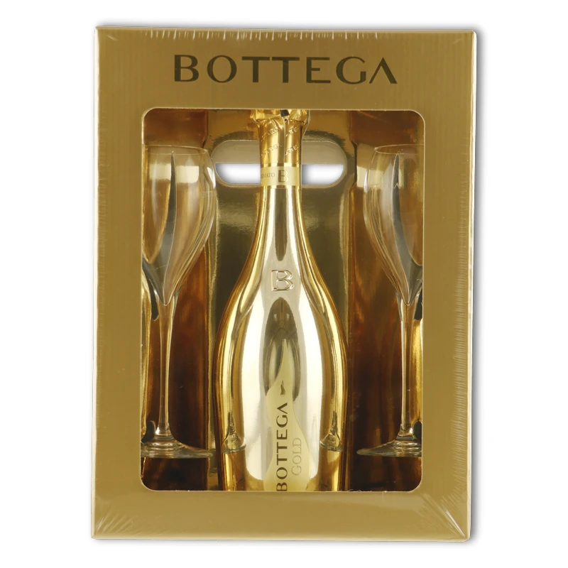 De iconische Bottega Prosecco Gold in luxe giftbox met 2 glazen. Sprankelend, verfijnd en het perfecte cadeau voor feestelijke gelegenheden!