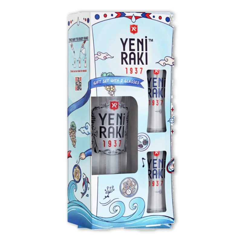 Deze luxe set bevat een fles van 0,7 liter Yeni Raki en twee originele Yeni Raki-glazen, ideaal om samen te genieten van dit iconische drankje. Yeni Raki wordt gemaakt van gedistilleerde druiven en anijszaad, wat zorgt voor een volle, aromatische smaak met een frisse, kruidige afdronk. Voeg wat koud water toe en zie de drank veranderen in zijn kenmerkende melkachtige kleur — een teken van pure kwaliteit.