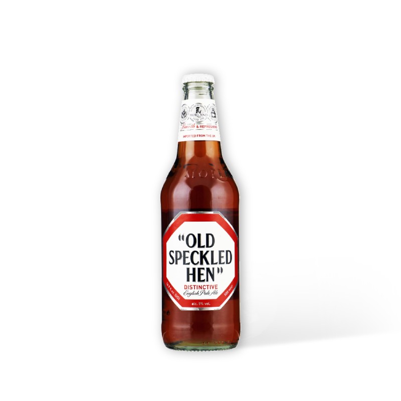 Geniet van Old Speckled Hen, een karakteristieke English Pale Ale oorspronkelijk gebrouwen door Morland Brewery in Abingdon-on-Thames in 1979 ter ere van de 50e verjaardag van de MG autofabriek. De naam is een speelse verknoping van een gold-slicked testauto, de «Owld Speckl’d Un» die de fabriek rondreed.